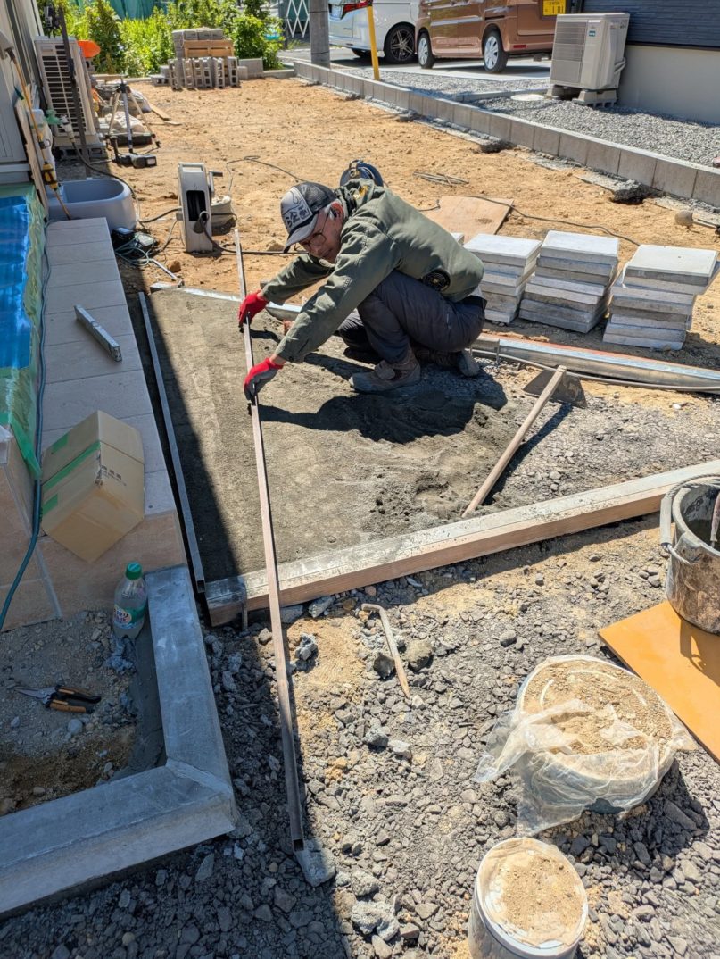 午後から別件のため早めに現場を離れましたが、午前中は基礎づくりから平板設置まで一連の流れを丁寧に進めました。